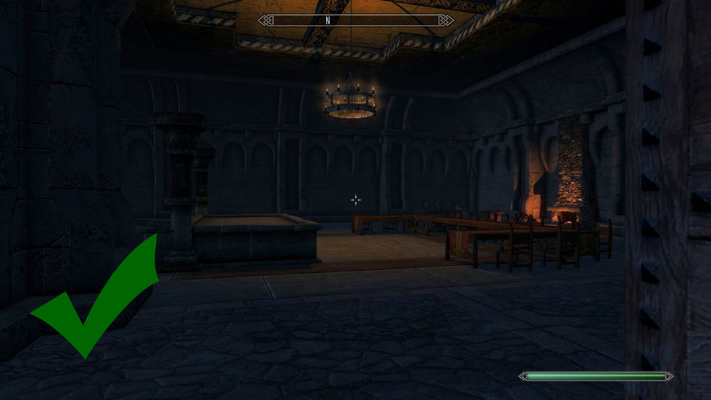 Trying something new - This kind of ties in with what I said about the theme. Going for a slower-paced, less action-focused experience is much different from what’s found elsewhere in Skyrim. The mansion setting is a great point of difference as well. It gives the dungeon a really unique style that separates it from not just the dungeons in Skyrim but also the dungeons in a lot of RPGs in general. It also poses unique design dilemmas - you can’t just place chests full of enchanted gear around or have doors locked by stone tablet puzzles because this is supposed to be somewhere people actually live! I had to think about how to rework the expected features of Skyrim dungeons to fit the setting. For example - to get around the loot issue I got the idea to use things like weapon mounts and mannequins, which are normally used by the player to display their gear, as ‘containers’. It’d be believable for a ritzy medieval mansion to have weapons and armour on display, and so players would be able to loot this.